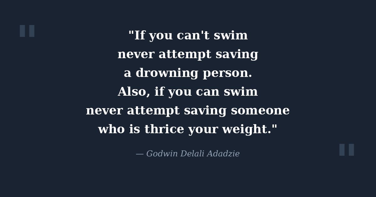 The Quote “If you can’t swim never attempt saving a drowning person. Also, if you…