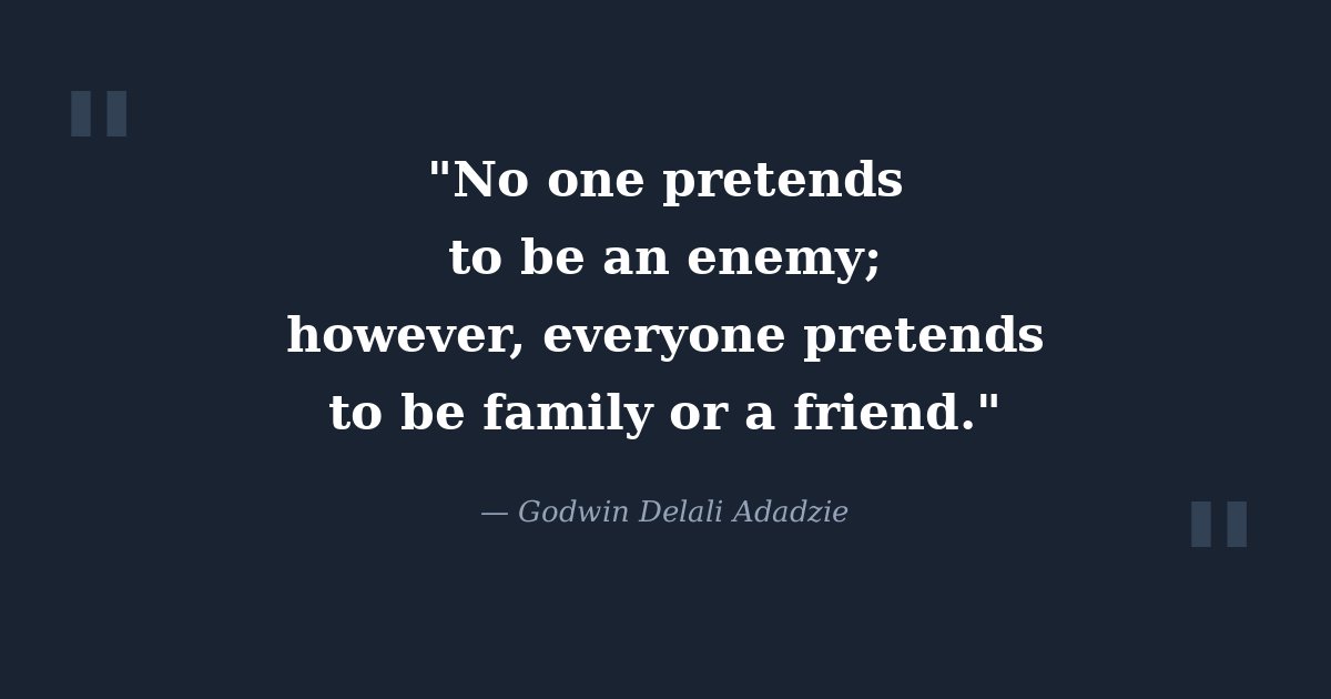 The Quote “No one pretends to be an enemy; however, everyone pretends to be family…