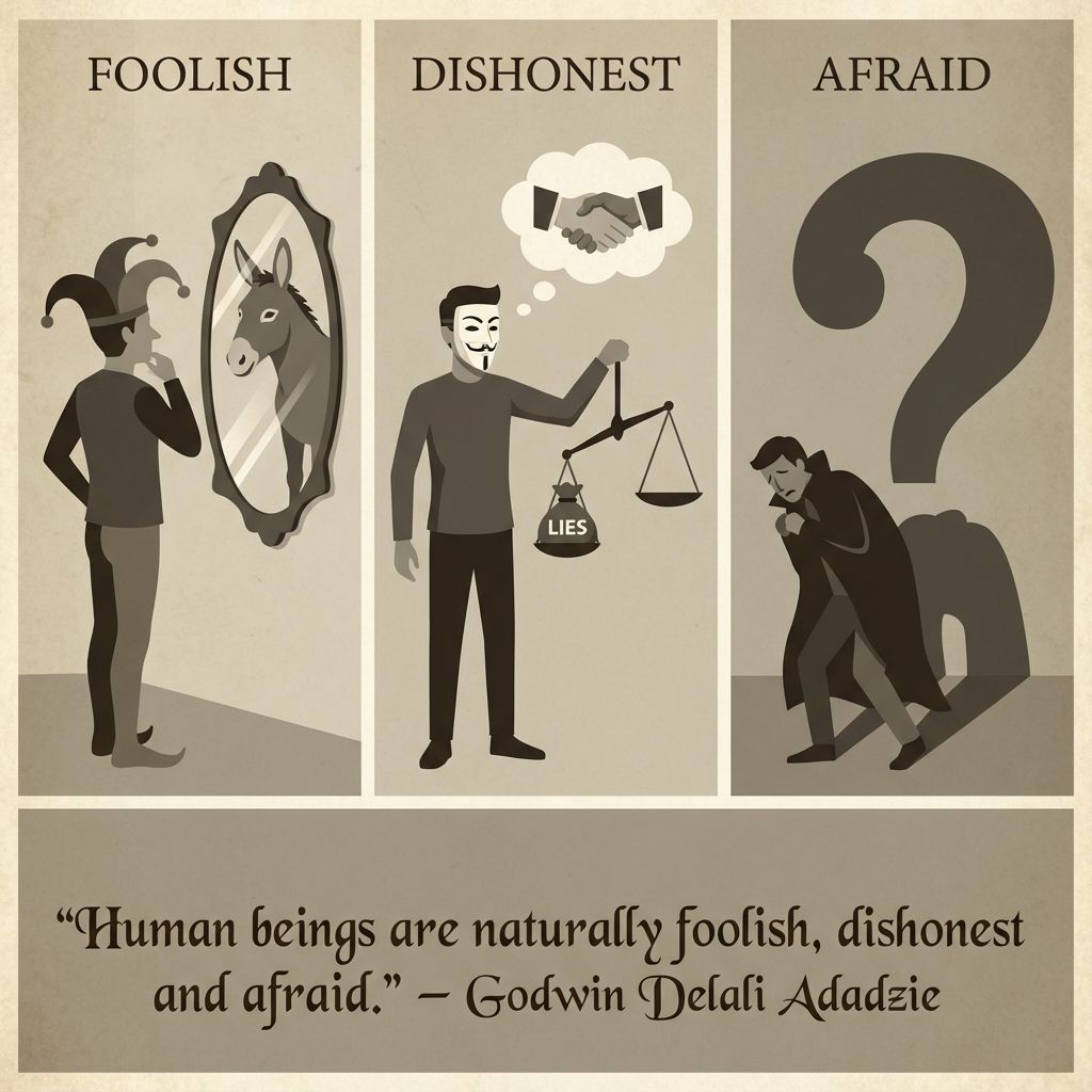 This reflection addresses an uncomfortable truth about human nature that modern culture often denies or minimizes: we are not born good, noble, or naturally inclined toward virtue. The observation captures three core defects that mark humanity in its fallen state—foolishness that rejects wisdom and truth, dishonesty that distorts reality for personal advantage, and fear that controls and paralyzes. Many contemporary philosophies insist that humans are fundamentally good and that evil is merely learned behavior or the result of bad environments. But honest examination of human history, careful observation of human behavior from earliest childhood, and biblical revelation all point to a darker reality: these negative traits are natural to us, not exceptions. Children don’t need to be taught selfishness, lying, or fear—these emerge naturally and must be trained out through discipline and moral formation. Understanding this truth isn’t pessimistic despair but realistic assessment that leads to proper solutions: we need transformation, not just education; redemption, not just improvement; God’s grace, not just human effort.