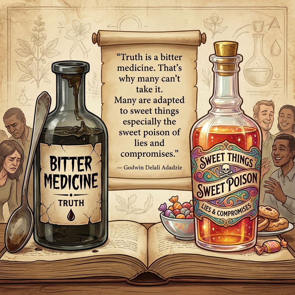 This reflection addresses a painful reality about human nature and truth: people often prefer comforting lies to uncomfortable truths. The observation uses a powerful metaphor comparing truth to bitter medicine—unpleasant to take but necessary for healing—while lies are sweet poison that tastes good while destroying from within. Many people have become so used to sweet things—flattery, false comfort, easy answers, convenient compromises—that they’ve lost the ability to receive truth when it challenges them, convicts them, or requires them to change. A doctor prescribing bitter medicine isn’t being mean; they’re trying to heal. But patients often refuse the medicine because it tastes bad, preferring sweet remedies that make them feel better temporarily while leaving the underlying disease untreated. Similarly, truth-tellers who speak hard truths are often rejected, attacked, or silenced, not because they’re wrong but because their message is bitter. Meanwhile, people who tell comforting lies are celebrated and followed, even as their sweet poison slowly kills those who consume it.